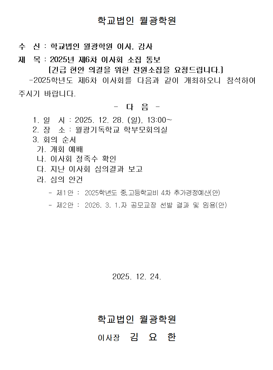 이사회 소집통보[25년 6차]
